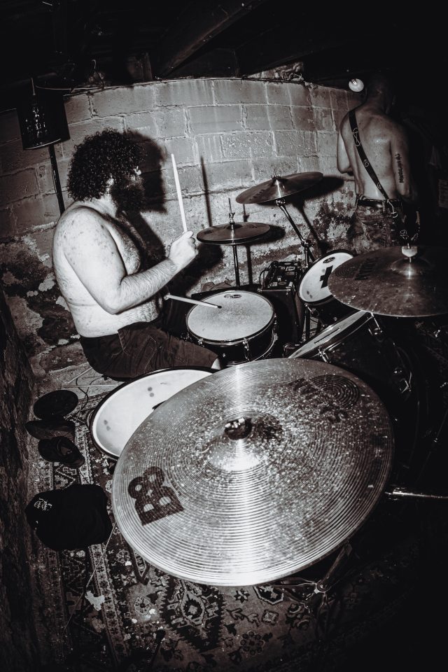 Dustin Maruca, Drummer of Shit Happens will humbly say “I just hit shit” but he gives his all every show, even with a torn ACL and a knee brace on the bands tour.